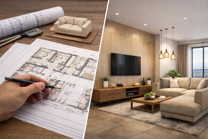 This package includes space planning along with realistic 3D views to help you clearly see how the final space will look. You understand room layout, furniture placement, colors and materials before execution starts. It gives better clarity and confidence before moving ahead.